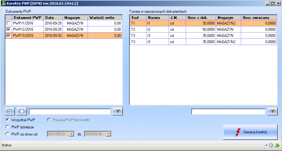 Dodano kolumnę z ilością dostępną do zwrotu, dodano parametr określający czy data dokumentu korygującego ma być taka sama jak dokumentu PWP. |