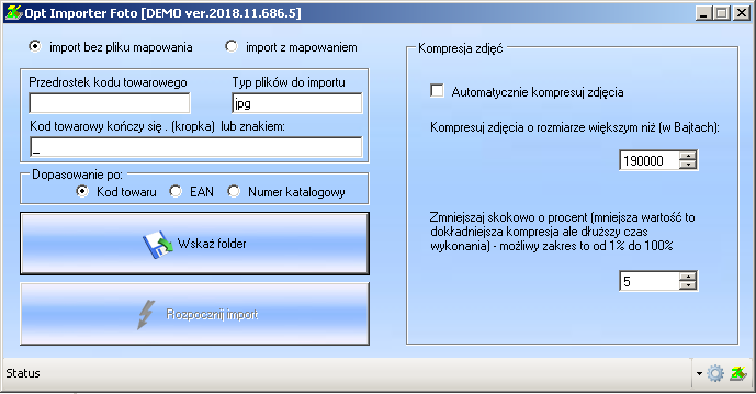 Dodano możliwość importu zdjęć z folderu na podstawie mapowania Towar <=> Zdjęcie zapisanego w pliku XLS. |